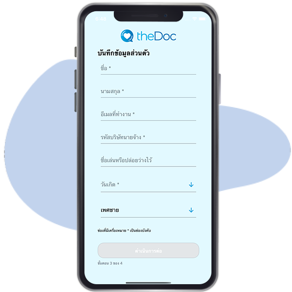 ดาวน์โหลดแอปพลิเคชัน theDoc จากแอปสโตร์หรือเพลย์สโตร์ ลงบนโทรศัพท์มือถือและลงทะเบียนเข้าใช้